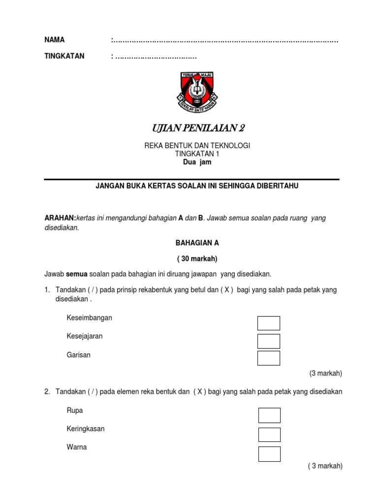 Soalan Peperiksaan Akhir Tahun 2019 Tingkatan 1 Reka Bentuk Dan Teknologi